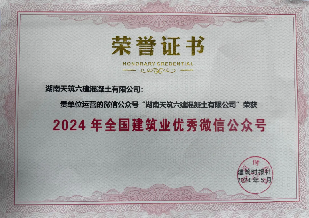 会上,建筑时报社公布了2024年全国建筑业“最具影响力”微信公众号、2024年全国建筑业优秀微信公众号榜单,月博集团子公司湖南天筑六建混凝土有限公司微信公众号斩获年度全国建筑业“优秀微信公众号”称号。